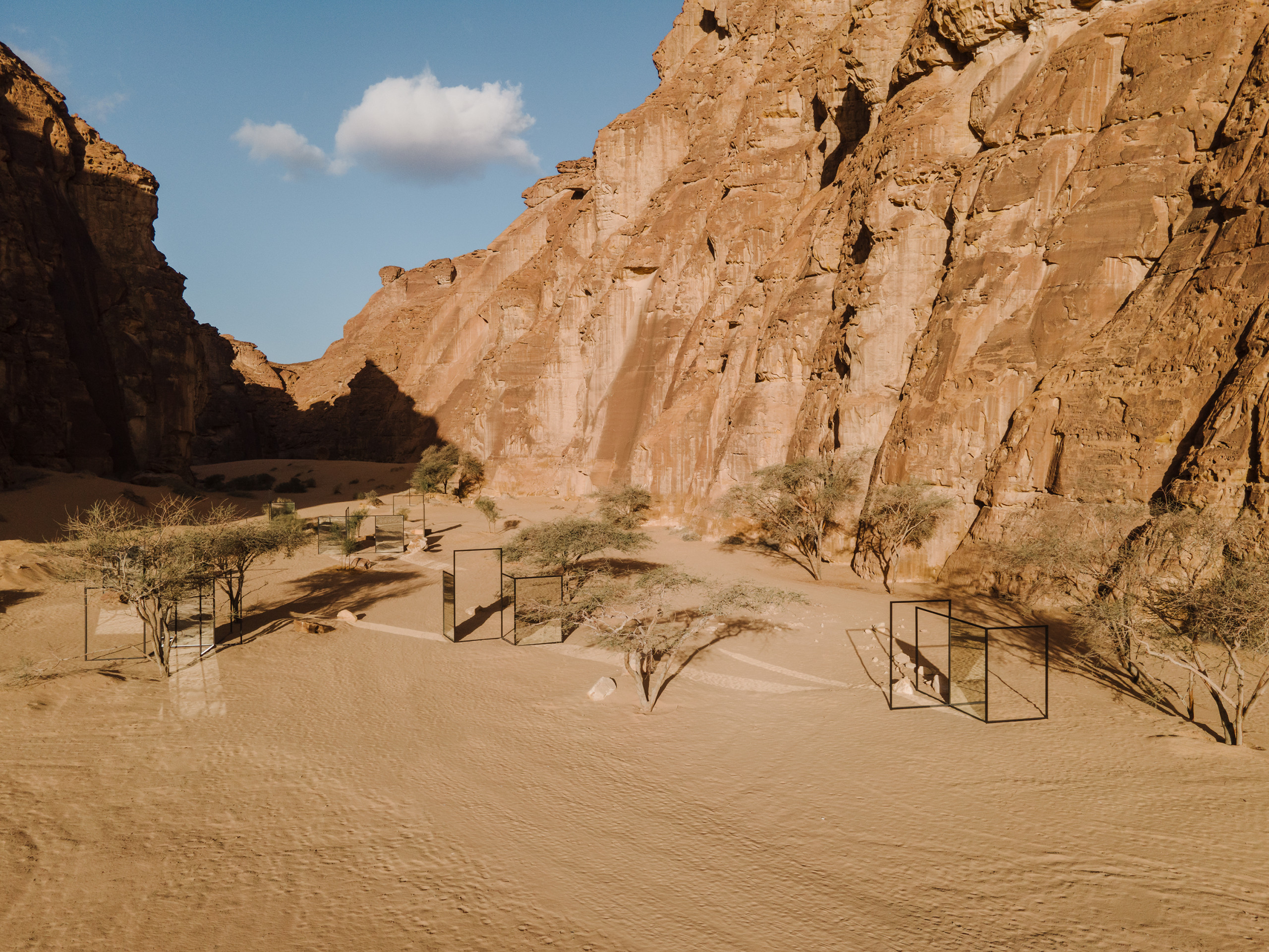 In Blur is more of an experience than a static installation. It comes to life through the viewer’s movement within the structure, as the way they read and understand the objects within it shifts depending on their perspective. This poetic work of art is a complex interplay of reflections on the world around us; it challenges the visitor’s understanding of their surroundings, emphasizing the subjectivity of perception and thus reality. In Blur draws inspiration from the surrounding iconic landscape and geological heritage. It features and strengthens the iconic landscape in all aspects: the vastness of the desert, the clear sky, the dramatic canyon. Reflecting the light and atmosphere of the desert, the mirrors almost create a Fata Morgana effect.
