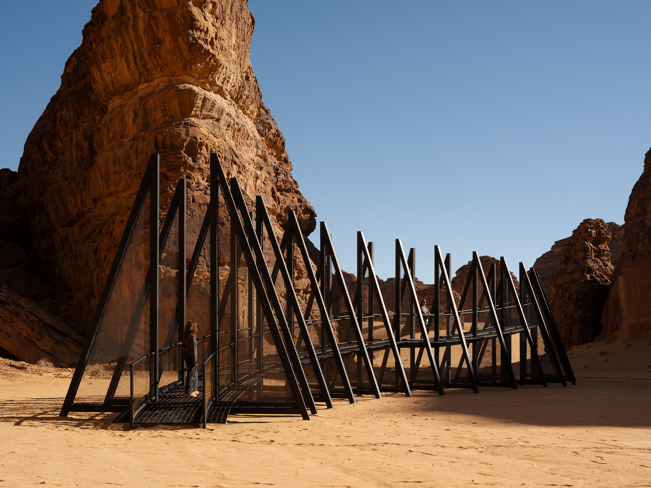A recurring theme in Nazer’s work in recent years examines transformation as a vulnerable process, often imbued with resistance and tension. With Preserving Shadows, she revisits this theme, probing it in the desert environment of AlUla. The work, which takes on a large-scale architectural form, stands in contrast to Nazer’s more intimate and delicate works, yet the hollow body evokes the transparency and energy of these softer works.