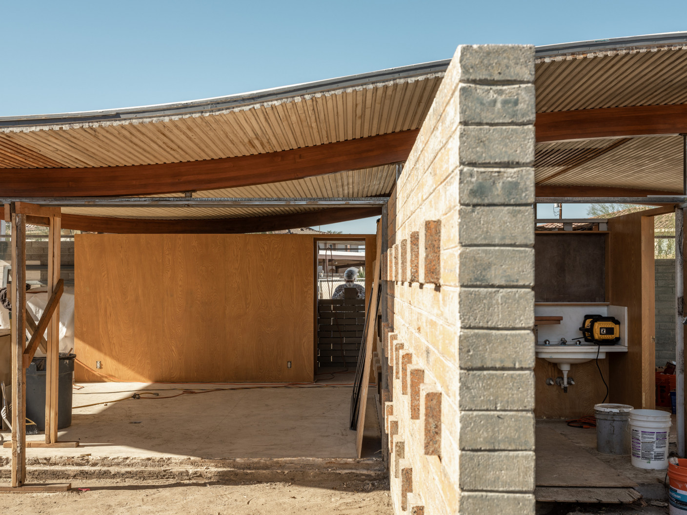 It Exists in Many Forms emerged from in-depth conversations between the artists and owners of midcentury homes in Palm Springs. The most passionate members in this community are vicars of a lifestyle that is both mystical and material. It Exists in Many Forms is a sound work inspired by these conversations and installed in a house. An underlying concern within the piece is shared notions of occupation, especially in light of how these homes have become “pieces” bought and sold like collectibles. Yet these houses are also akin to living museums for their proprietors. The midcentury home thus invites us to re-inhabit history and relive the past. Rather than focus on architecture, Postcommodity places this architrave of desert civilization within a framework of kinship. It Exists in Many Forms looks to desires specific to the midcentury, which sought to meticulously plan living while doubling as asite of spontaneity and celebration. Midcentury modernism manages a complicated discourse by making proprietorship an aspect of personhood that seems impossible elsewhere: The architecture in local lore is one of imported European ideas made alien in the salutary sunshine and exposed skin of Californians. In its popularity, the midcentury has also monopolized regional culture by dislocating alternate narratives of settlement in lands that remain predominately Cahuilla tribal territories. A sensate cluster of associations, in other words, holds unparalleled power in Palm Springs as an origin myth. Caught between ritual and existence, the midcentury modern is better experienced than described. Like architect Walter White’s Wave House where it is sited, It Exists in Many Forms amplifies complex sensations that attempt to intimate the desert as design element and object of allurement.