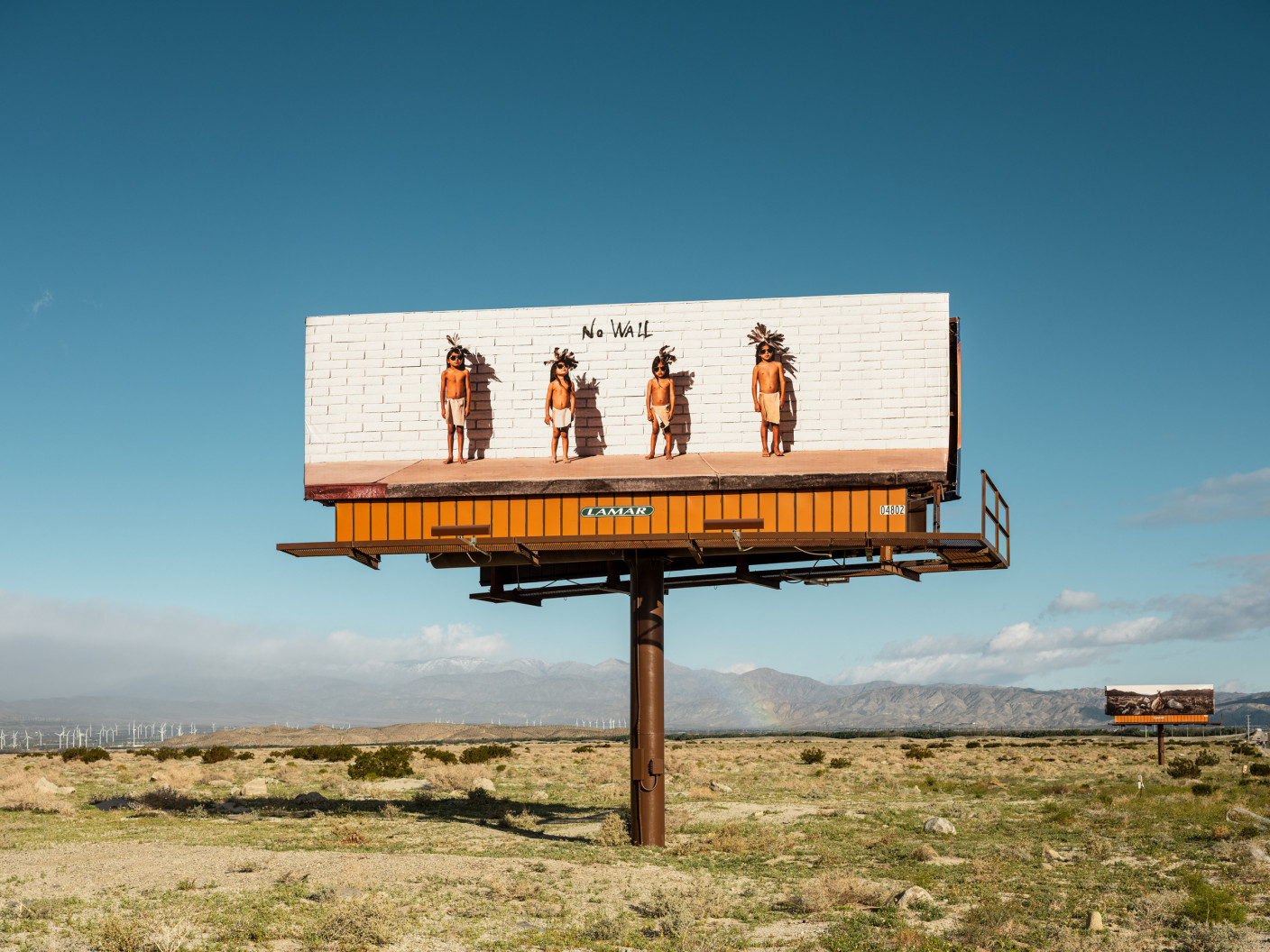 Cara Romero’s new photo-graphic series, Jackrabbit, Cottontail & Spirits of the Desert, responds to the ancestral lands of the Cahuilla, Chemehuevi, Serrano, and Mojave people. These images feature four special time-traveling visitors from Chemehuevi who have come to the ancestral lands of their sister tribes in the Coachella Valley. In Romero’s vision, these small but mighty figures have returned to remind us of our deep connections to the land, the stories contained within it, and how we can live in relation to it. In terms of geological and ancient social history, Palm Springs is a new city located in the ancestral lands of the Cahuillas with a rich history that predates colonization. The images in Jackrabbit, Cottontail & Spirits of the Desert are manifestations of a oral tradition, bringing visibility to the individuals, cultures, and history that continue to inform this landscape, whether or not they have been privileged in the long arc of our collective story.