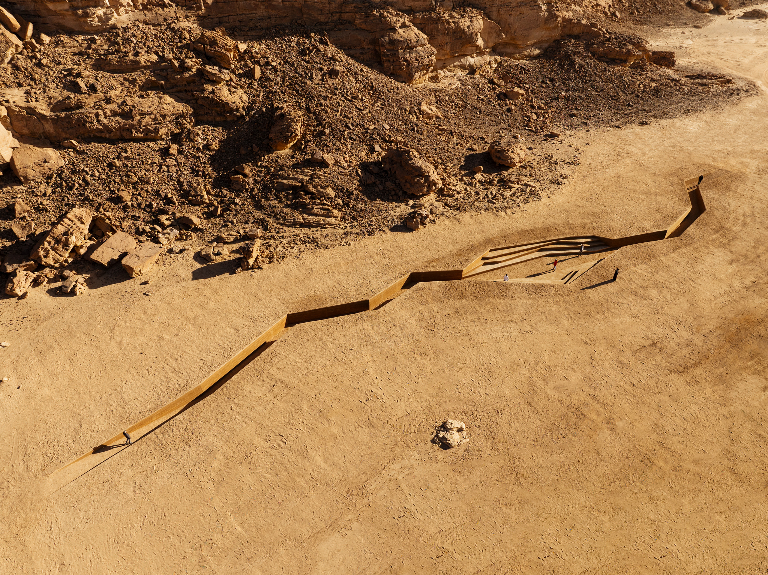 To establish this connection, Alissa and Alsudairi looked freely into the sub-level materiality, found forms, and let them perform as architecture. The work emerges from the dictations of the site itself and the engagement of the viewer: the emphasis is shifted from the qualities of the work to the aesthetic values of the exchanges involved in the investigation of the site itself. Thus, “blurring lines between object and subject.” To further establish an understanding of subjectivity in relation to positionality, Alissa and Alsudairi reference Rosi Braidotti’s notion of the “nomadic subject.” In her writings, the nomad describes an epistemological condition, a kind of knowingness – or unknowingness – that refuses fixity, that allows us to think between or “as if,” to articulate another reality. These traces inform the artists’ pathway to the proposed work and prompt the discovery process of the larger site, playing an important role in creating new kinds of relationships between subject and object.