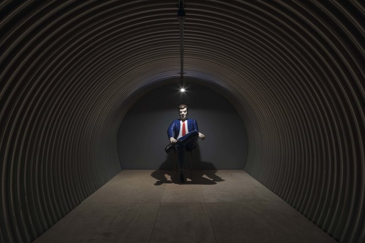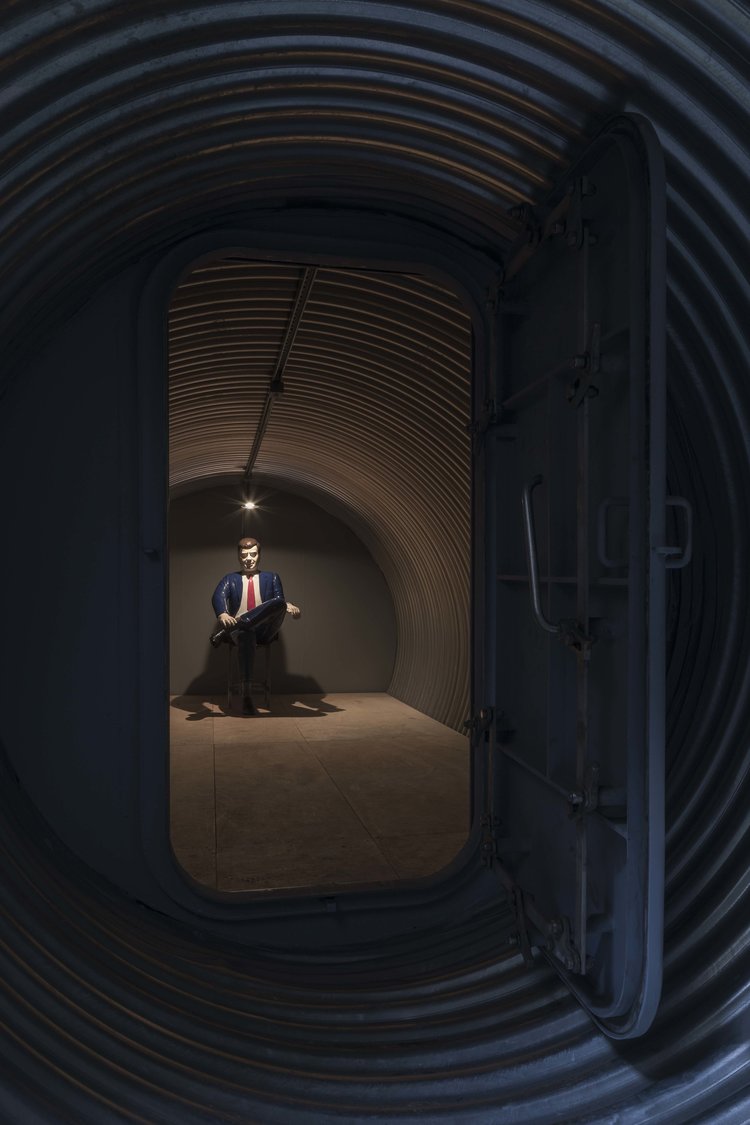 “As a Texan I feel connected to the death of John F Kennedy. I’m not sure if I come from the place where he died or the place that killed him.” Like the myths surrounding Elvis, Jesus or UFO’s, Boone sees the figure of JFK as lightening in the ground, bunkered in the very same Atlas Survival Shelter that the then president had in case of nuclear attack. Inside Monument the painted bronze figure is based on that of a hobby-kit, scaled up to heroically Hellenistic proportions. It might be equal part Catholic reliquary or one of the secretive roadside shrines found in the nearby deserts of Mexico, dedicated to the narco-saint Jesus Malverde. Either way it speaks not just to all those things that have been driven underground since the extinguished optimism of the sixties but to those same fears - nuclear attack and the invasion of the other – that have been so vividly resurrected in recent times.