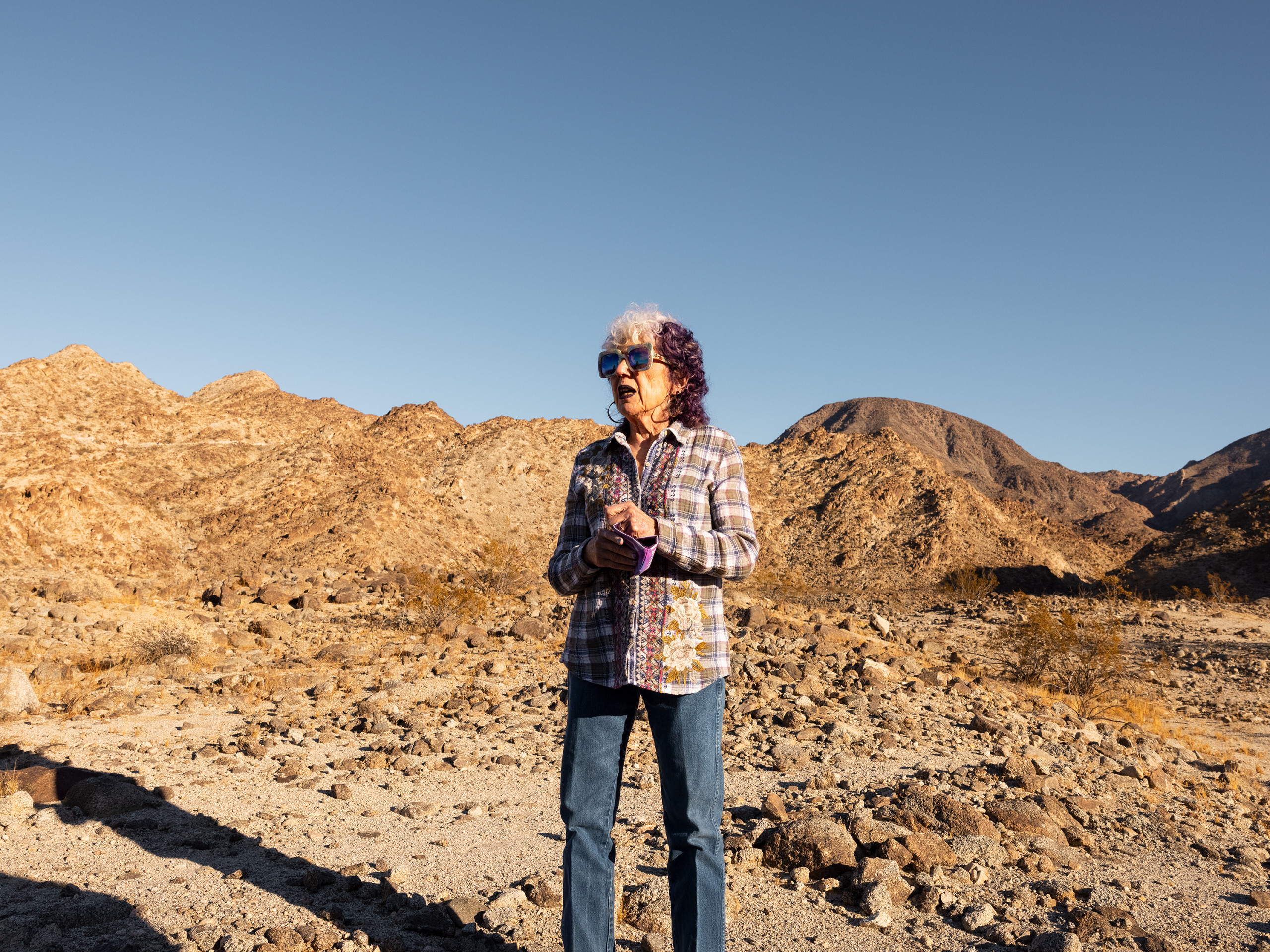 Over a career spanning more than 50 years, Judy Chicago has created art in a variety of media including fireworks, plastics, china-paint, and needlework while engaging the political issues of the day. Her early Atmosphere works consisted of colored smoke that momentarily transformed the landscapes they inhabited. Created in response to a land art movement that consisted largely of male artists’ bulldozers, Chicago’s works resisted scarification in favor of ephemeral moments of softening and feminization of the landscape. For Desert X, she presents a new smoke piece, using completely non-toxic materials, alongside images of previous works. Living Smoke celebrates the desert landscape and the indelible work of an artist for whom the personal, political, and environmental have always intertwined.