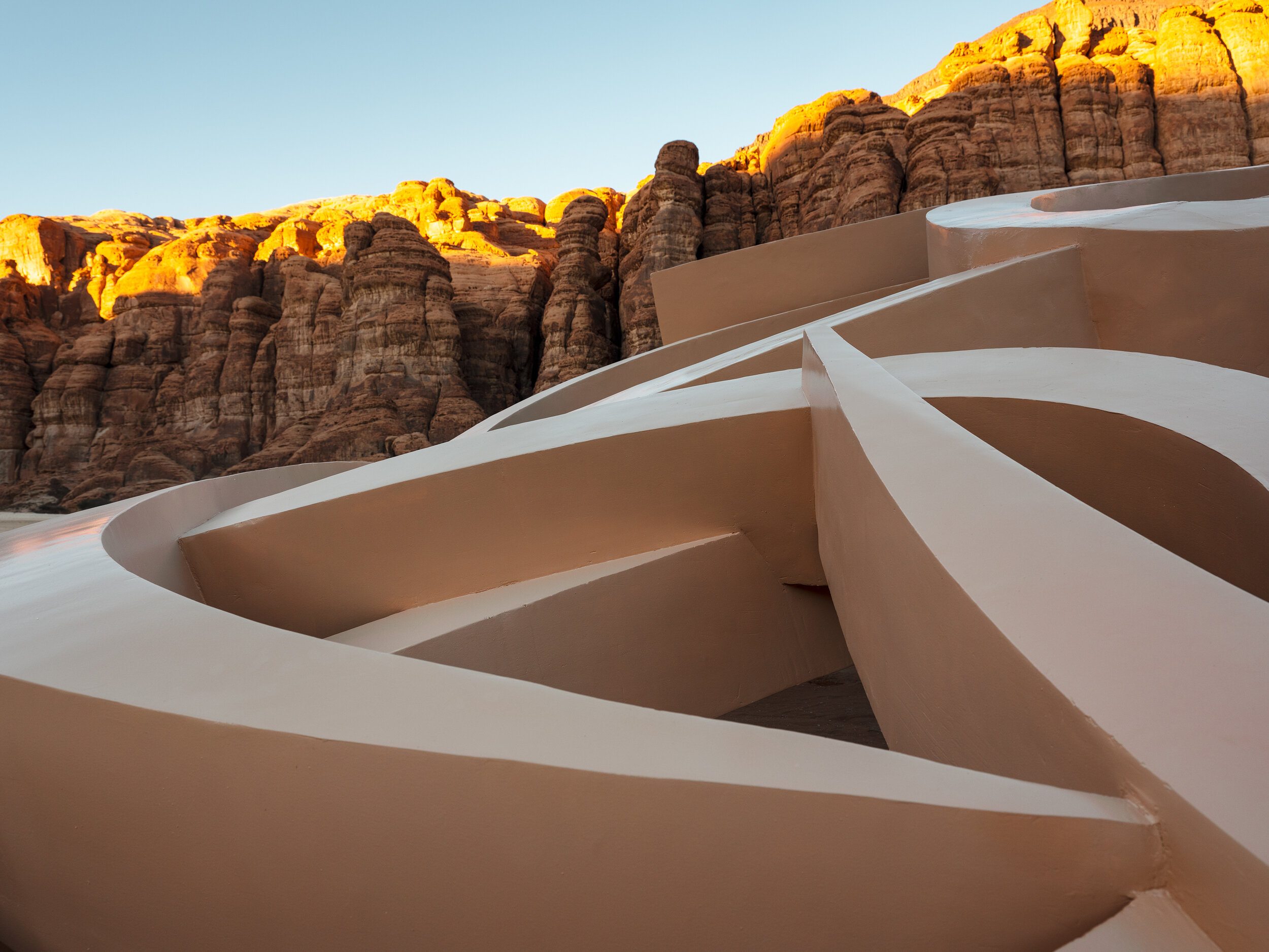As audiences approach this installation, which is geographically aligned with the trade routes that once were the life-blood of the region, they will be appreciating the rich history that the desert sands have witnessed, as well as considering their own place within civilization, and the majesty and power of the natural world. Embedded within its surrounding, the work surrenders to the immensity of the landscape embodying the sense of humility concurrently felt by the individual.
