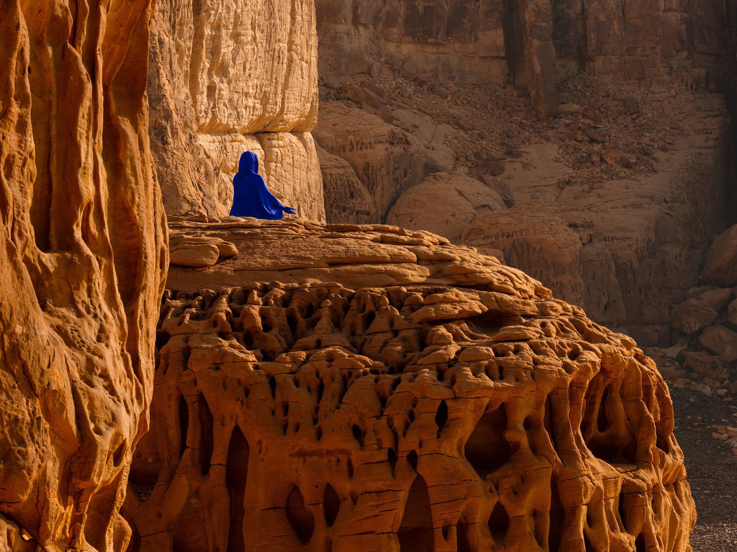 The narrative is particularly potent here in AlUla, with the region’s long connection to astronomy. The sculpture sits atop a bolder in the hidden valley, amid a special arrangement that reflects the alignment of stars overhead on January 31, 2020, at the exact moment of the opening ceremony, at 26.5503 degrees N, 37.9679 degrees E.