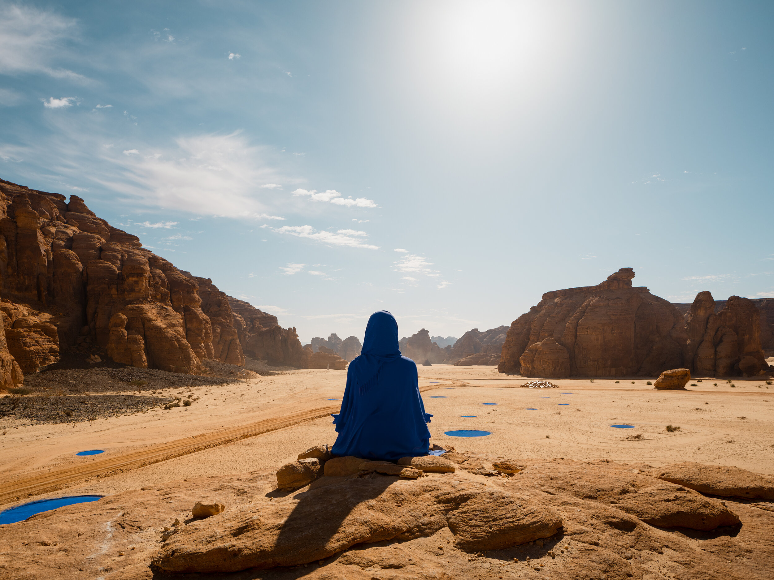 NAJMA (She Placed One Thousand Suns Over the Transparent Overlays of Space) is a continuation of Albuquerque’s projects in the great deserts of the world. For the artist, deserts are places to listen and connect to the rich history of celestial traditions. Here, the narrative of the mythical astronaut Elyseria’s teaching brings her to the year 2020. We are invited to walk through a field of stars, their exact patterning and alignment particular to AlUla and the moment of the exhibition.