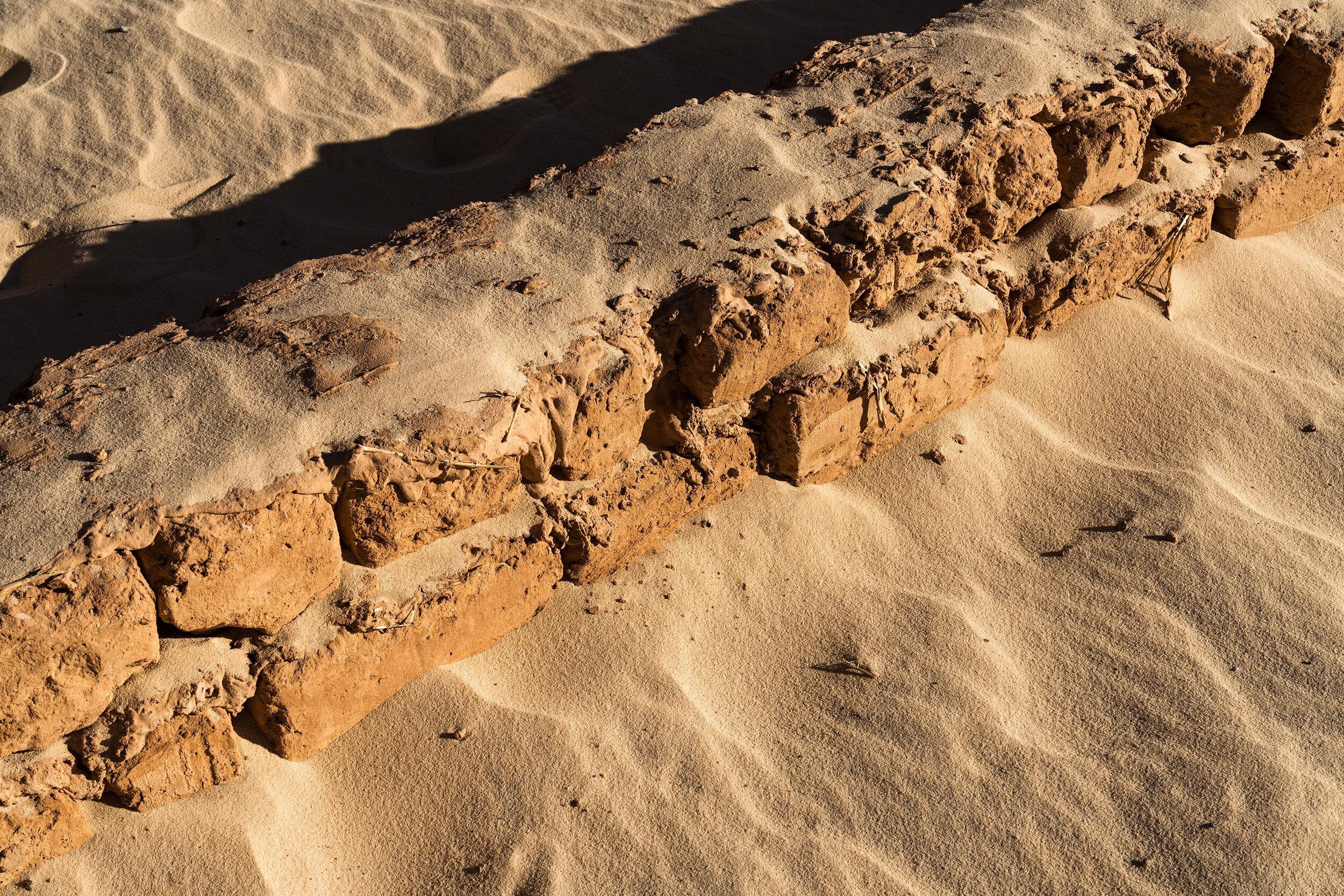 The artist produced the film in negative to further highlight themes of memory, history, and nomadism. The idea of inversion is instrumental in much of Shawky’s work and is employed to strengthen his visual language. The notion of nomadism and the history of the Bedouin are also important to Shawky and he has previously worked with Bedouin tribespeople for his Telematch and Dictums series. Shawky’s mud house is also inverted with a Bedouin-style tent on top of its roof rather than the ground. Together, the house, tent, and film projection create a distinctive and surreal landscape.