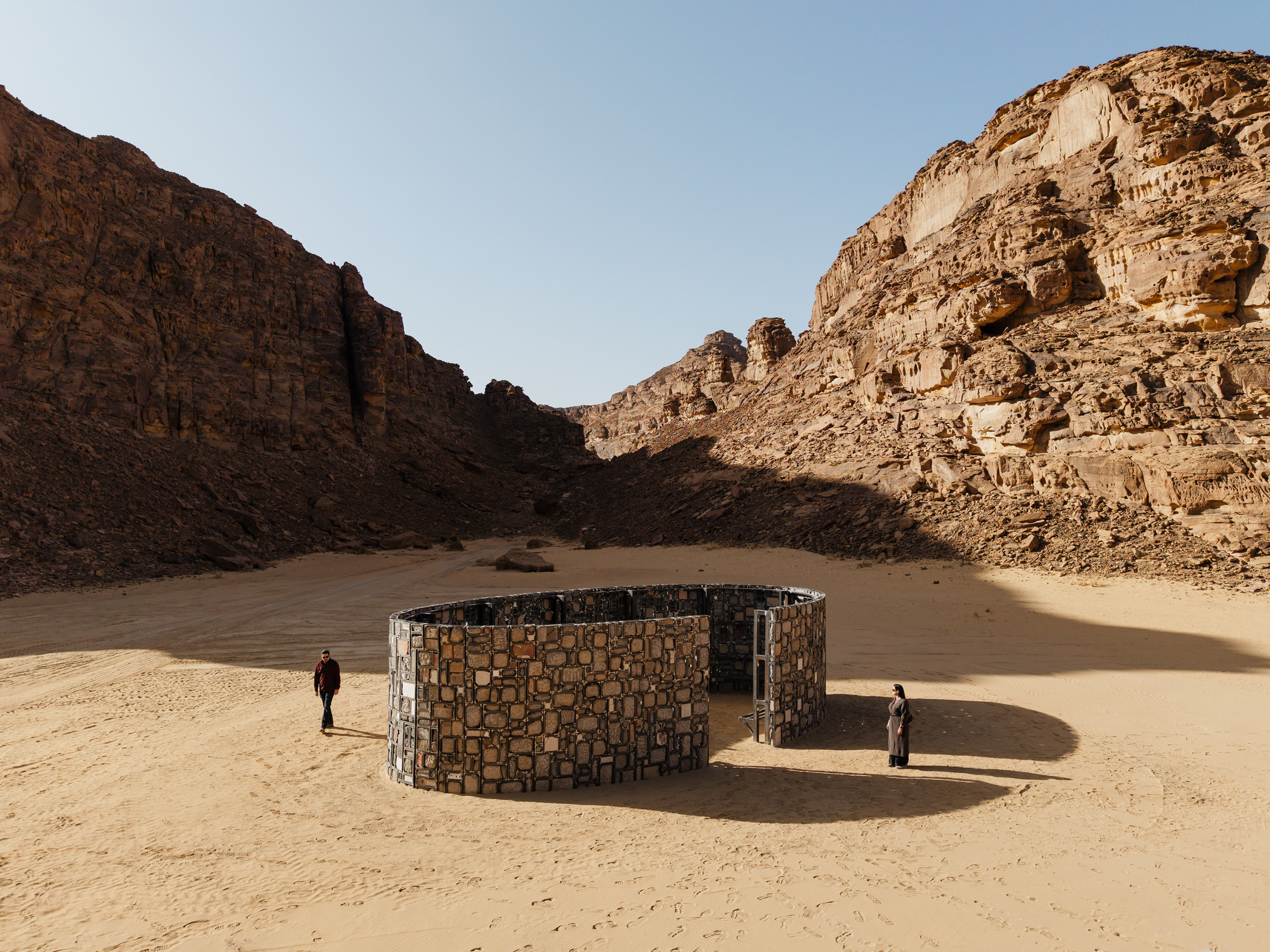 The sculpture grows through participation. Local debris carries the resonance of place; visitors are invited to leave words, grief, hope, turning the work into a living archive. In this desert of deep time, Future Fables becomes a fable of resilience, a relic of what remains, a space where ruins speak and tomorrow breathes through sand.